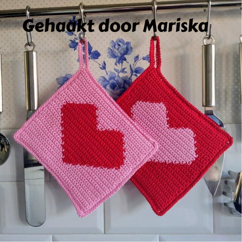 Wil je een warme, handgemaakte pannenlap haken met een liefdevolle uitstraling?