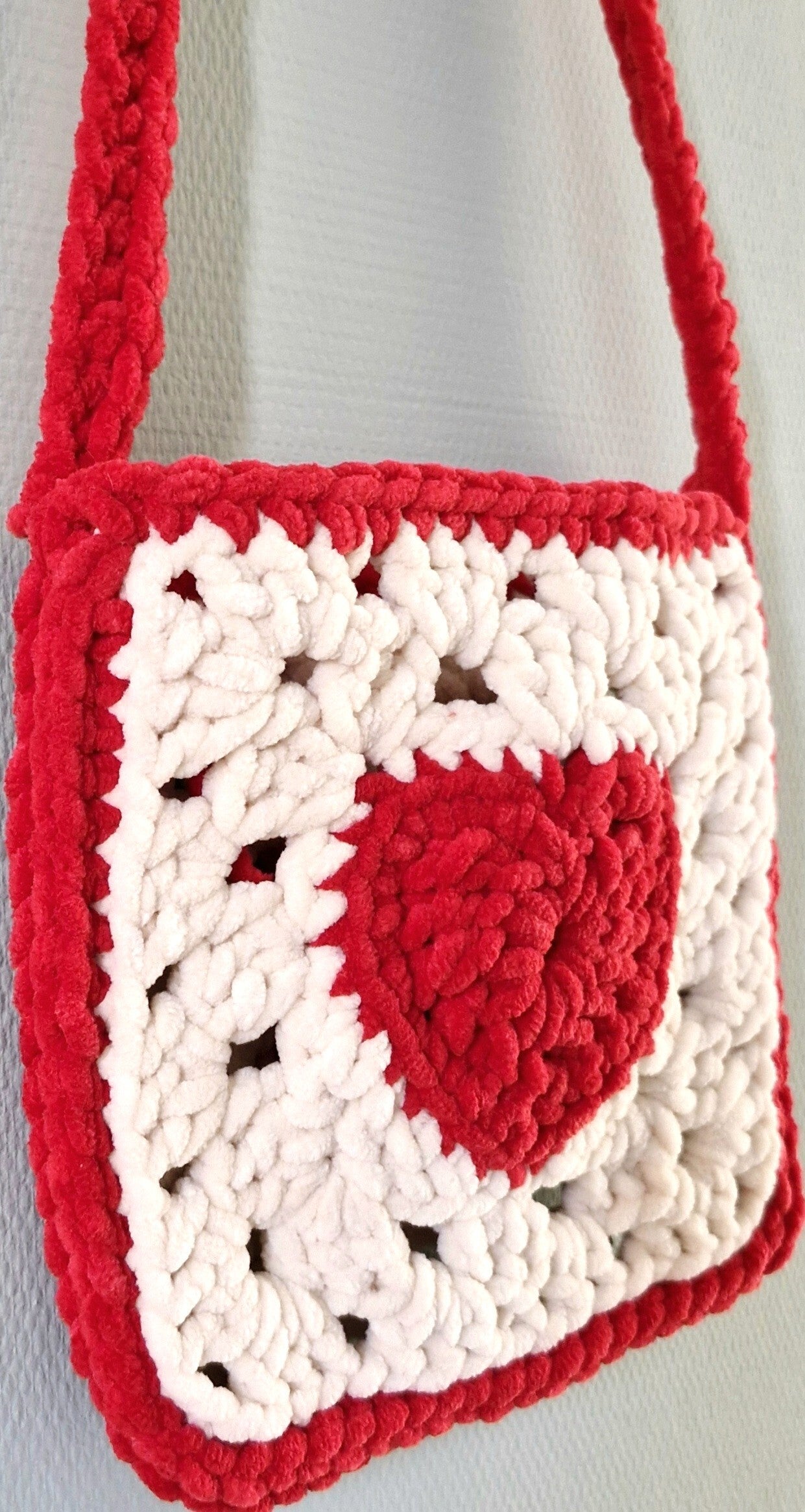 Dit schattige knuffeltasje is speciaal ontworpen voor kinderen. Gehaakt met superzacht velvet garen en voorzien van een lief hartje, is dit tasje perfect als eerste tasje, voor kleine schatten of als knuffelvriendje onderweg.