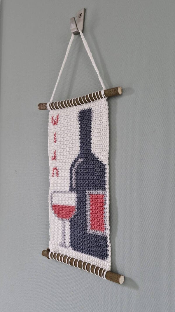 Dit leuke zomerse haakpatroon is het zusje van 'wandhanger Wine'. Haak het in je eigen favoriete zomerse kleuren.