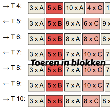 kleurenblokken waarin per toer staat hoeveel steken je in elke kleur haakt